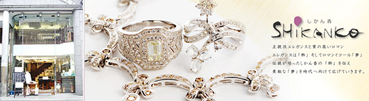現在、しかん香では海外・国内のアーティスト作品からライトジュエリーや天然石などの鉱物まで幅広い宝飾品を取り扱っております。また、皆様の持っておられる金・プラチナといった貴金属製品、ダイアモンド、カラーストーンジュエリーの買い取りも行っております。